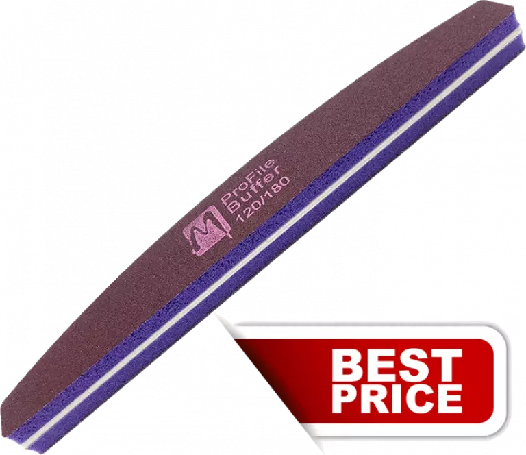 Buffer bzw. Polierblock: Spezialwerkzeug für schöne NägelDer Buffer in Brückenform ist ein besonderes Werkzeug für Nageldesignerinnen, um Rillen und andere Unebenheiten auf einem Nagel sanft zu entfernen. Der Moyra Buffer in Lila eignet sich bestens zum Polieren einer Modellage, harter Linien und tieferer Unebenheiten. Er sollte nicht auf neuen Acrylmodellagen verwendet werden.