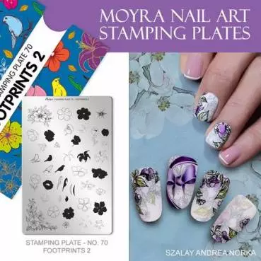 Der Motiv-Vielfalt der Stamping Platten von Moyra sind kaum Grenzen gesetzt. Jede unserer Schablonen enthält mind. 20 gestochen scharfe Stampingmotive.Mit der Stamping Platte Footprints 2 Nr.70 von Moyra schaffen Sie besonders schnelle und schöne Nail Art. Die Muster und Ornamente lassen sich durch die Stamping Technik besonders leicht und lupenrein auf den Nagel übertragen. Mit derzeit bereits über 1700 Motiven schaffen Sie für sich selbst oder für Ihre Kunden eine ganz besondere, individuelle Nail Art, die einen bleibenden Eindruck hinterlässt. Und das in kürzester Zeit. Die Moyra Nailart Stamping Platten können mit speziellem Stampinglack, Stamper und Scraper bearbeitet und sowohl auf Nagellack, Gel Lack, Colour Gel als auch auf Acryl angewendet werden.